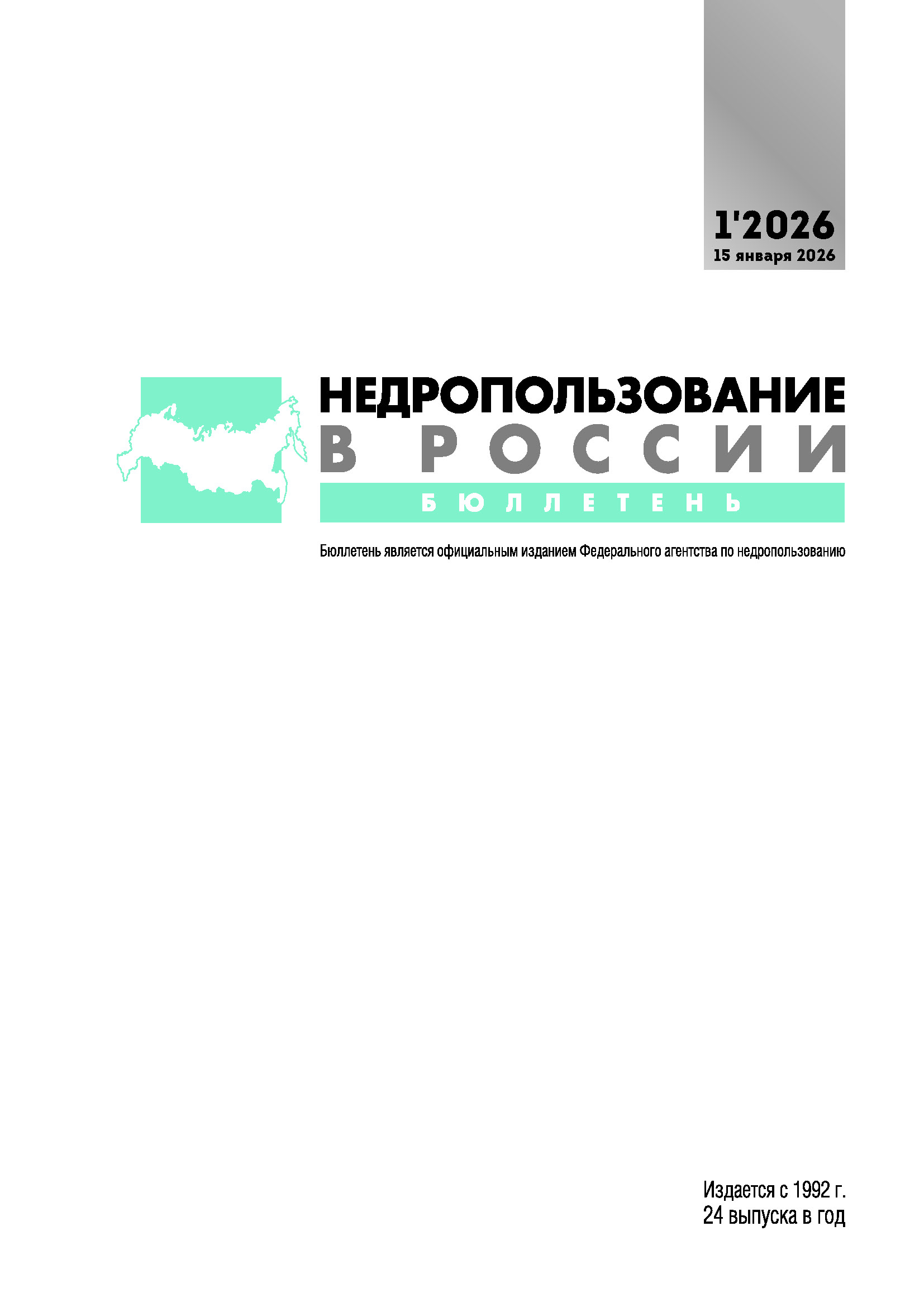 Бюллетень является официальным изданием Федерального агентства по недропользованию.